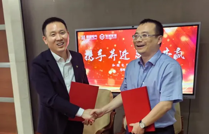 Wang Dong (right), Chairman and General Manager of Suzhou Heshun Electric, and Liu Erming (left), Chairman of Zhejiang Xincheng Wisdom, signed the contract